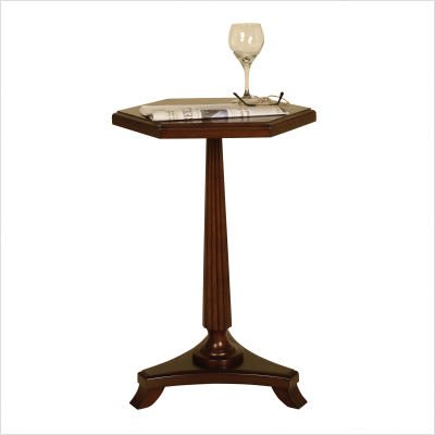 This Accent Table has a unique Hexagonal shape, a modern choice that is combined with a classic pedestal style base. The platform tripod base is sturdy and compact, a space-efficient choice when used as a side table in the living room. Display a vase or lamp, or simply rest your drink on this elegant occasional table. Made of MDF with a cherry mahogany finish. Maximum weight capacity 50 lbs. Assembly level/degree of difficulty: Easy. Read more...