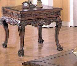 If you've been looking for vintage style furniture, then look no further. This end table has an elegant top and sides, with detailed carved legs and traditional ball and claw feet. It comes in a dark brown finish. They're 30 inches square and 27 inches high. Read more...