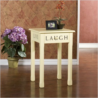 With a great statement to live by, this cottage accent table features a drawer and hand painted lettering which reads, "Live, Love, Laugh!" It's the perfect addition to any room in your home! Assembly required. Dimensions: 16" W x 16" D x 24.25' H. Color: Yellow. *Extra Shipping. Read more...