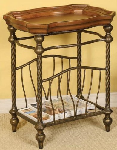 With an eye catching design and a stable base, the Metal and Wood Magazine Table is the perfect addition to your home! This accent table will look great in any room of the home. The legs of this end table are made from twisted metal and have an oil rubbed bronze finish Features a tray table top that is carved into an eye-catching shape The wood in this table has a gorgeous walnut finish Includes a handy magazine rack under the table top Assembly level/degree of difficulty: Easy. Read more...